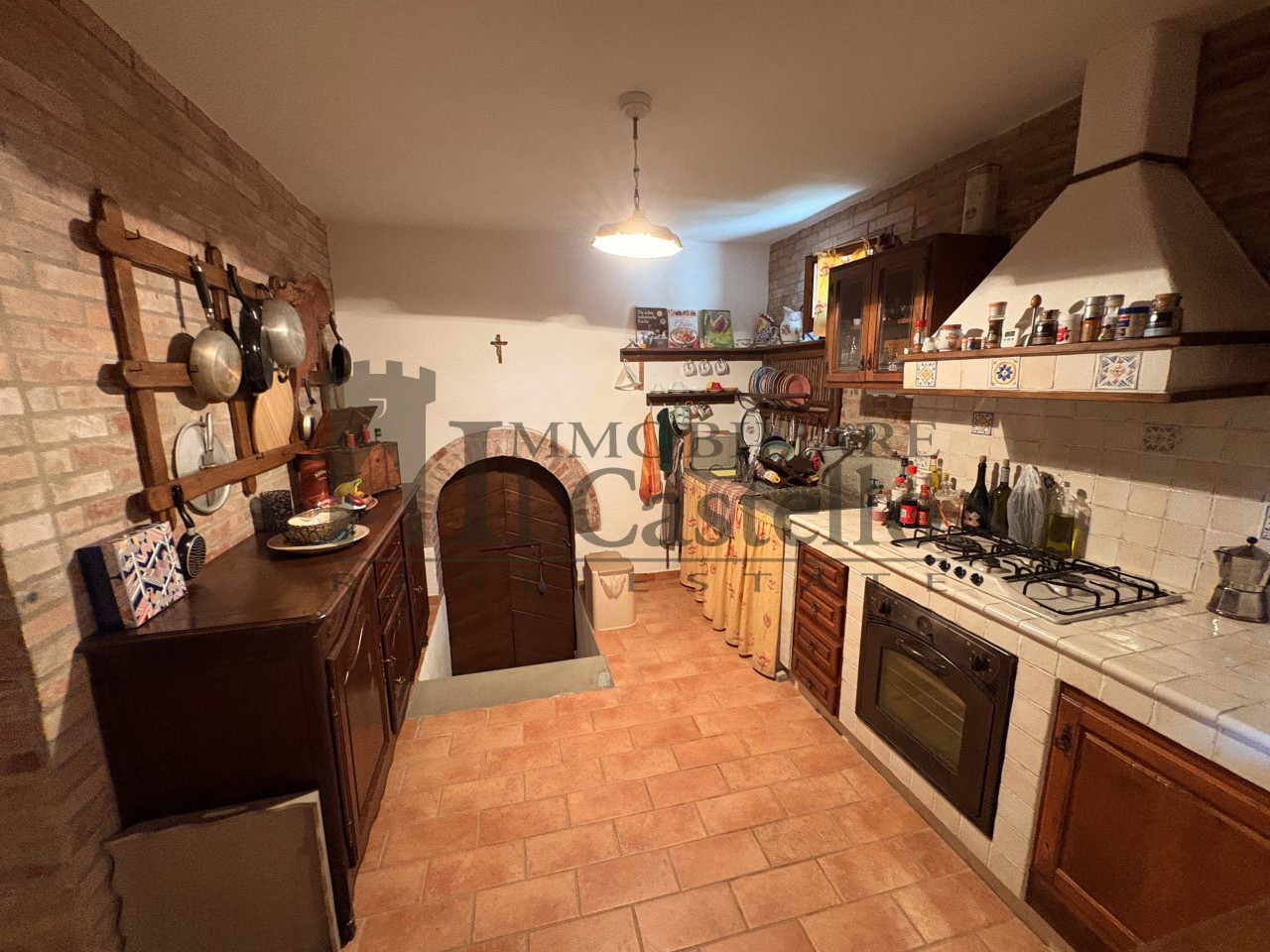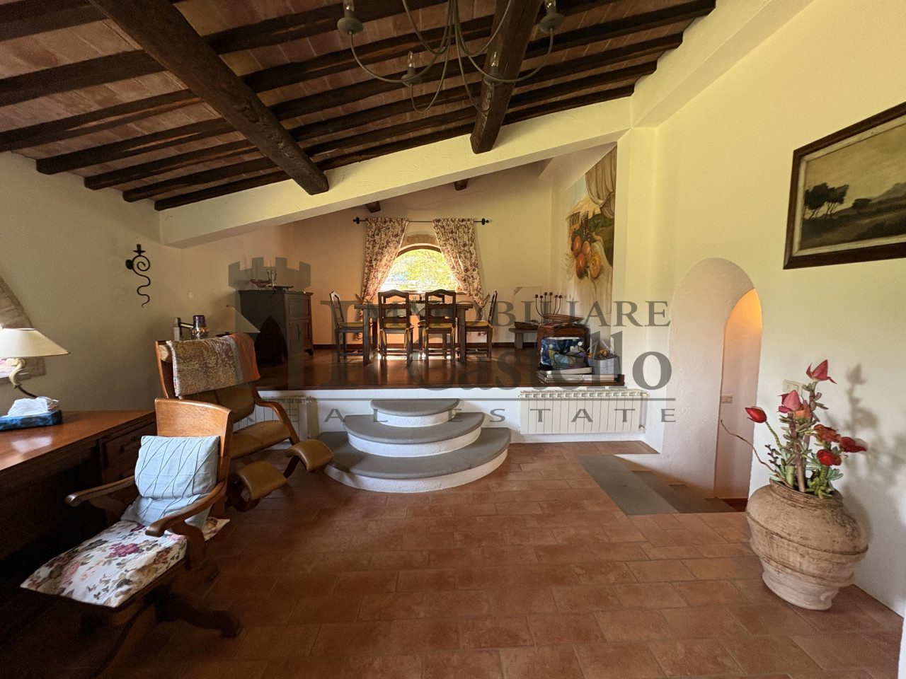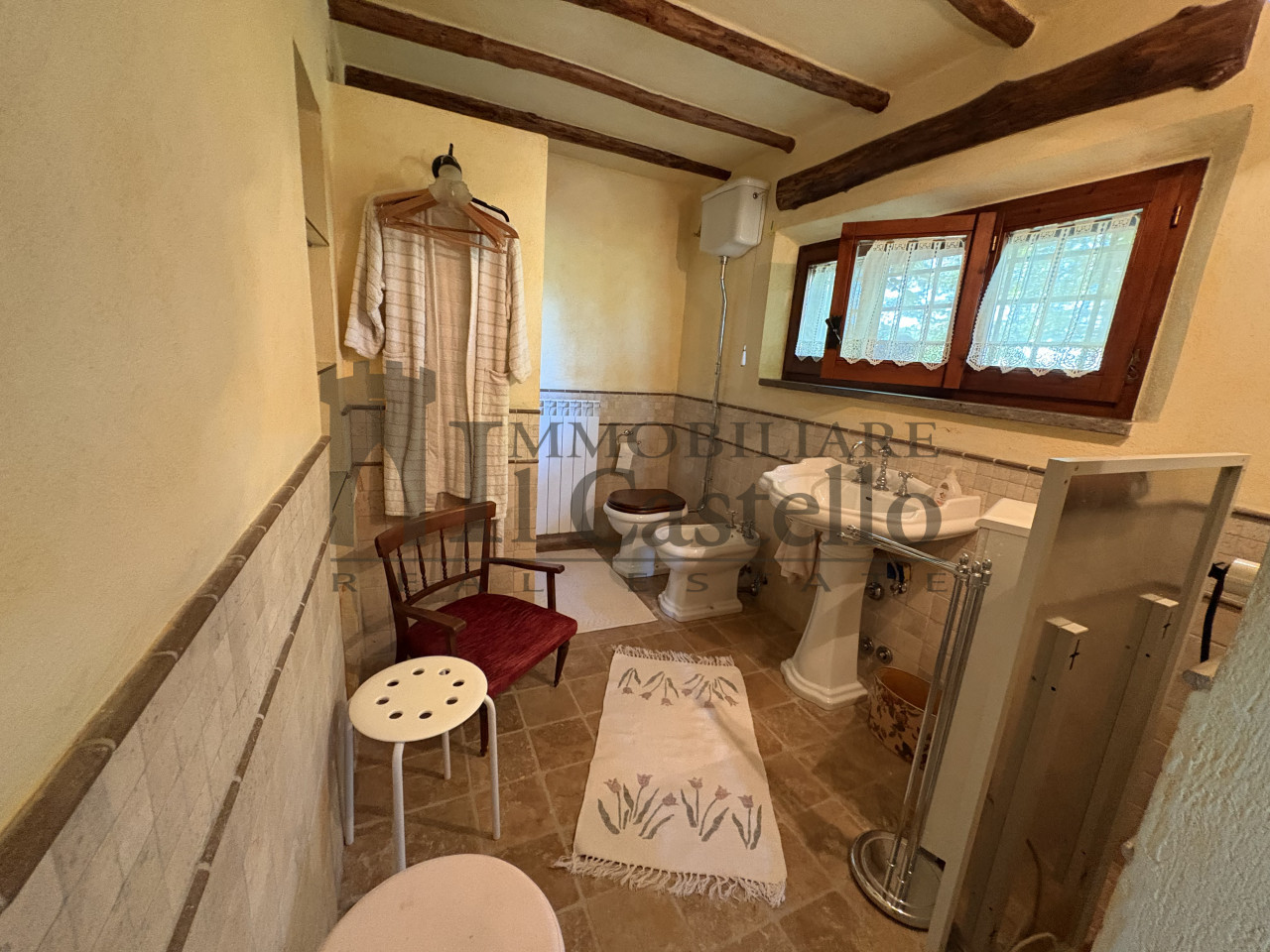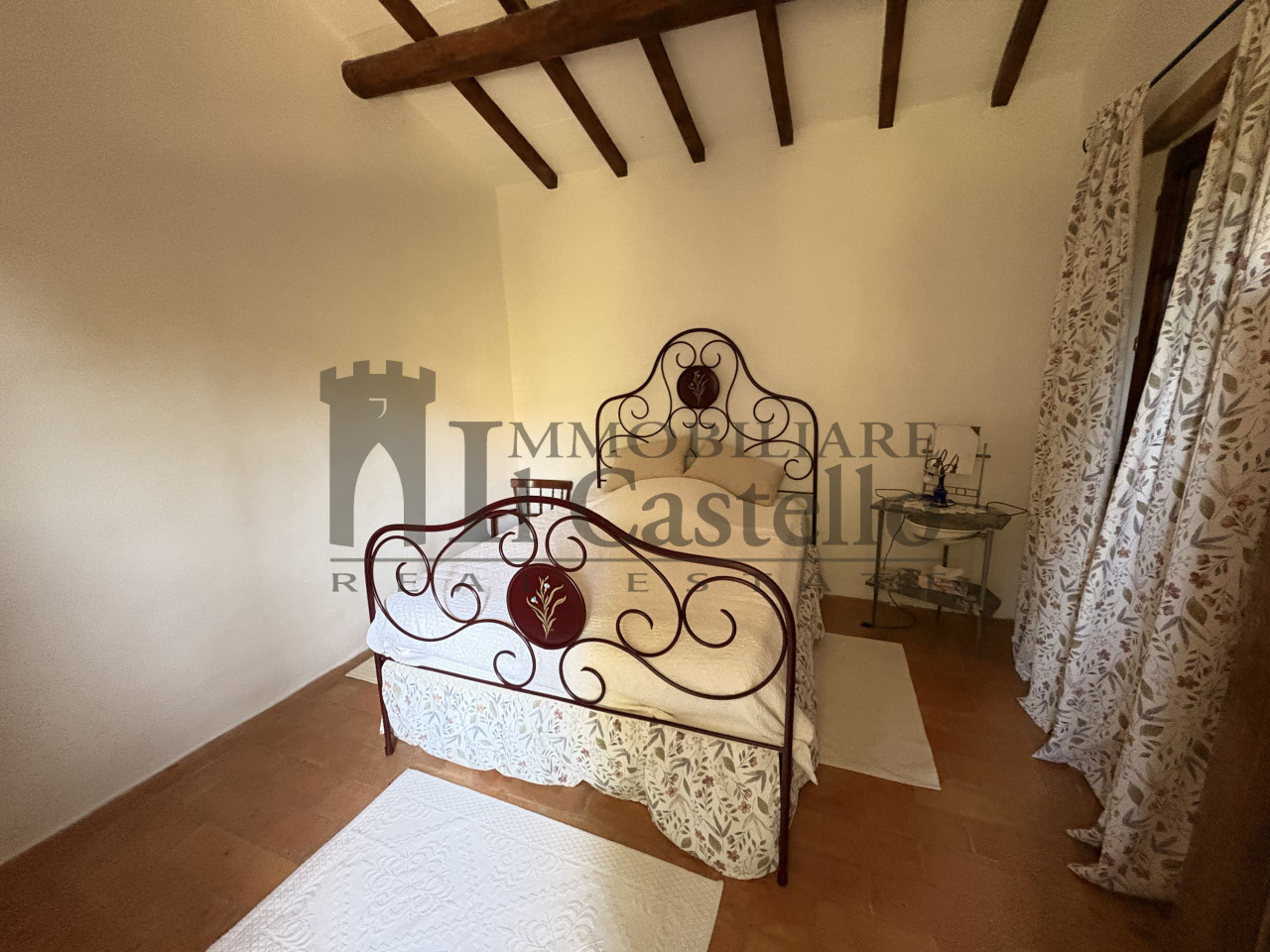 L'immobile è caratterizzato da ambienti luminosi, e materiali originali come i pavimenti in cotto, le travi in legno a vista.