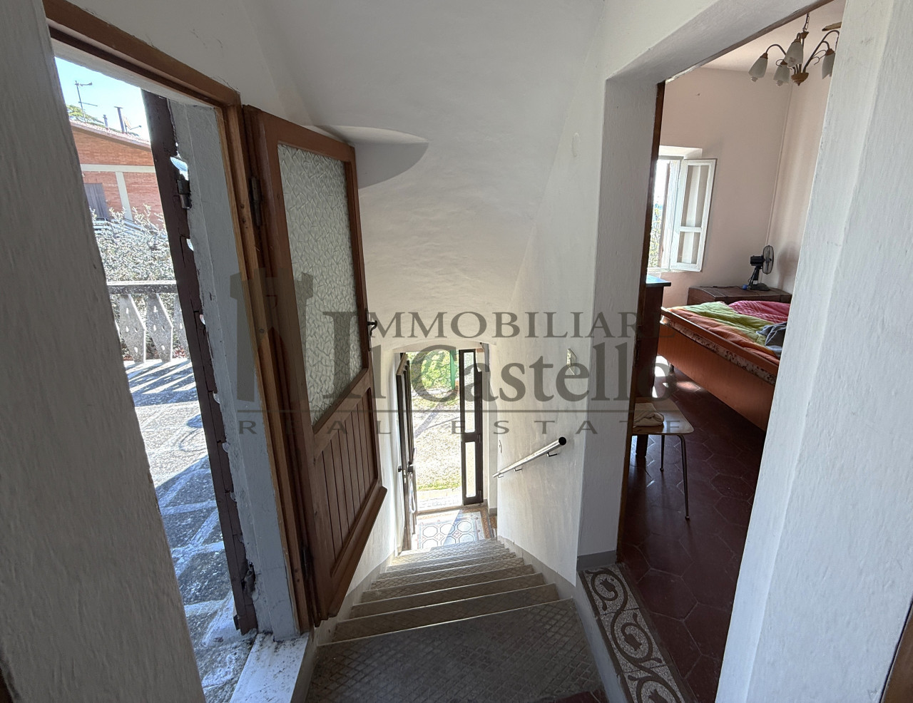 DESCRIZIONE: A circa 5 km da Castiglione del Lago, in un piccolo paese circondato dalla splendida campagna a confine tra Umbria e Toscana, porzione casa indipendente di circa 80 mq. Disposta su due livelli è formata da: soggiorno con angolo cottura e cantina al piano terra, tramite una scala interna si accede al primo piano dove troviamo da due camere, bagno e terrazzo.
