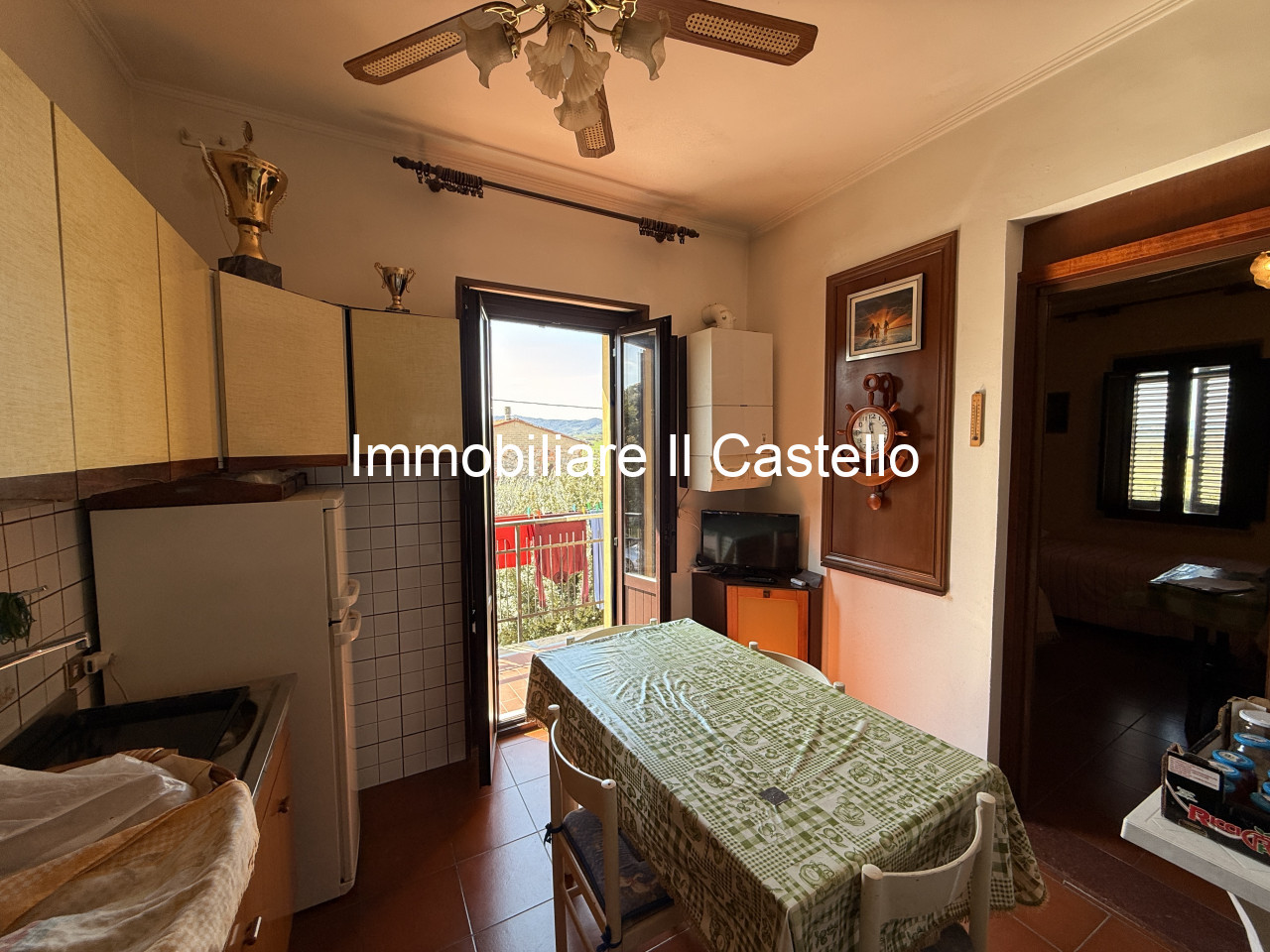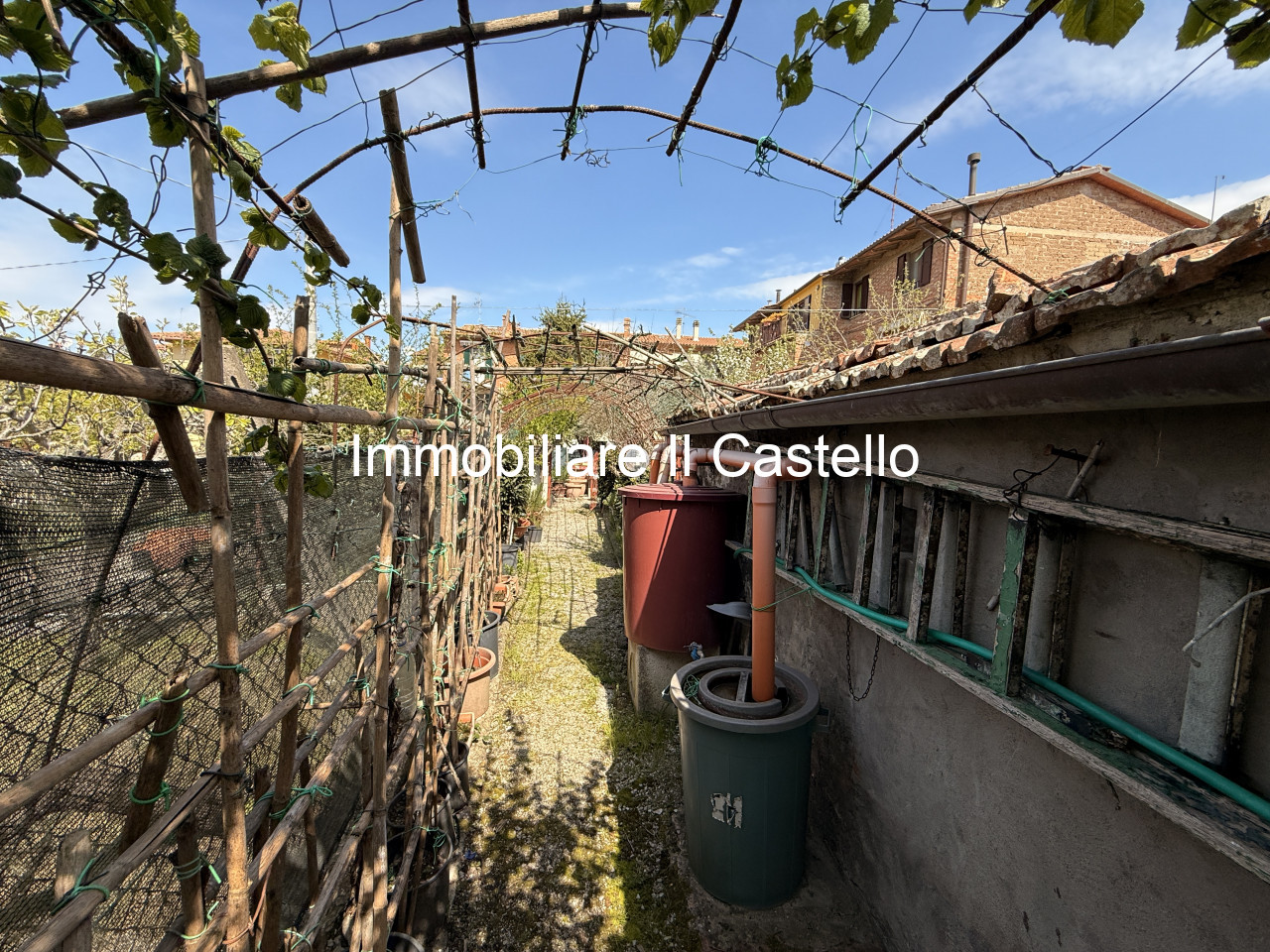 DESCRIZIONE: all'interno del paese, vicino a tutti i servizi, porzione di casa di circa 128 mq. Al piano terra ingresso, bagno e magazzino, al secondo piano a cui si accede tramite scala interna troviamo soggiorno con balcone (con tenda), cucina e tinello, camera matrimoniale con balcone (con tenda) e bagno con doccia. A completare la proprietà giardino distaccato con annesso, pozzo e corrente. L'appartamento presenta infissi in alluminio, tende da sole elettriche e due ingressi entrambi indipendenti, uno sul fronte e uno sul retro. Tetto antisismico. Parcheggio condominiale. Tutte le stanze hanno doppie finestre che favoriscono l'illuminazione.