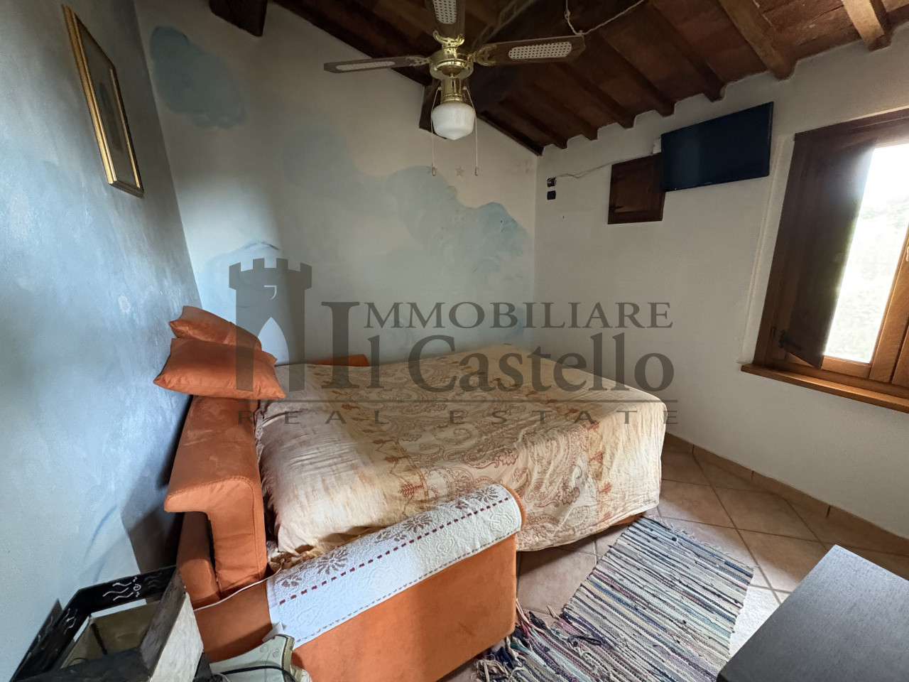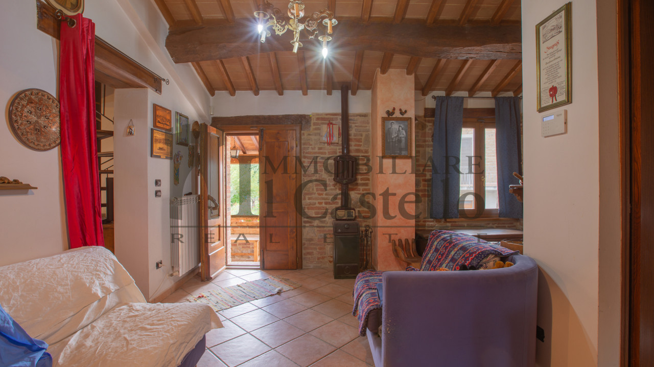 DESCRZIONE: la "Porzione di Maya" si sviluppa su tre livelli: al piano terra troviamo un ampio rustico di circa 60 mq, in parte già rifinito, che ospita una cucina rustica, un bagno e un grande open space con camino, uno spazio ideale per momenti conviviali, cene tra amici o da trasformare in zona living indipendente. Attraverso una suggestiva loggia esterna si accede al primo piano, dove si sviluppa la zona abitativa principale di circa 75 mq. Qui troviamo l'ingresso, una sala climatizzata, un soggiorno ristrutturato nel 2020 con terrazza, una cucina abitabile, un bagno e una camera matrimoniale. Gli ambienti sono caldi e accoglienti, valorizzati da materiali tipici della tradizione umbra come pavimenti in cotto antico, pareti in pietra a vista, soffitti con pianelle e travi in legno. Una scala interna conduce al secondo piano di circa 16 mq, dove si trovano un ulteriore bagno e una seconda camera matrimoniale, anch’essa caratterizzata dai tipici travi a vista, che donano continuità e armonia a tutto l’immobile. La recente ristrutturazione ha saputo valorizzare questi dettagli tradizionali mantenendo al contempo un alto livello di comfort, rendendo la proprietà perfettamente adatta sia come abitazione principale, sia come seconda casa o come soluzione da mettere a reddito. L’immobile è in ottime condizioni ed è abitabile fin da subito. La ristrutturazione ha mantenuto e valorizzato le caratteristiche originali, con finiture di qualità che preservano il fascino tipico del casale umbro. Inoltre, il tetto è stato coibentato per garantire efficienza termica, mentre gli infissi interni sono in doppio vetro e quelli esterni in PVC, assicurando comfort e isolamento acustico. L’immobile è dotato di aria condizionata nella sala e di un termocamino integrato con termosifoni alimentati a metano. Rete elettrica, acqua e fognatura sono regolarmente allacciati ai servizi pubblici. È inoltre presente un impianto di allarme per garantire la sicurezza della proprietà.